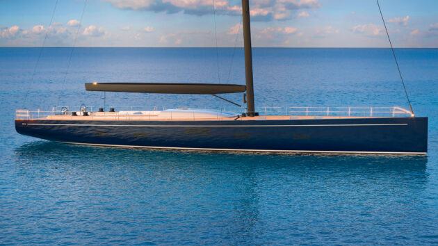 Dixon Yacht Design’s latest radical sailing concept is a twin-masted Dynarig yacht capable of operating without burning fossil fuels. The 60m design has a long, low-slung coachroof with inverted windows that give it the looks of a go-anywhere explorer yacht.