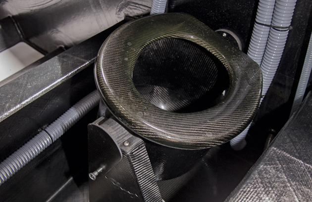 TACKING HEADS There are two concessions to ‘luxury’ aboard Comanche, one being a carbon fibre tray for six coffee cups and the other a carbon heads that can be tacked! No privacy for the latter, of course