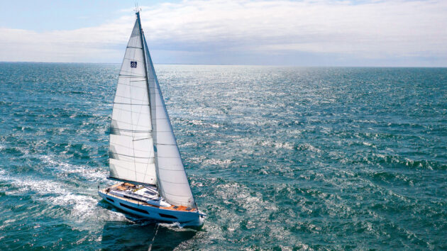 The additional beam in the Dufour 48’s forward sections boosts an already high level of form stability, which clearly helps resist excess heel, even in powerful gusts.