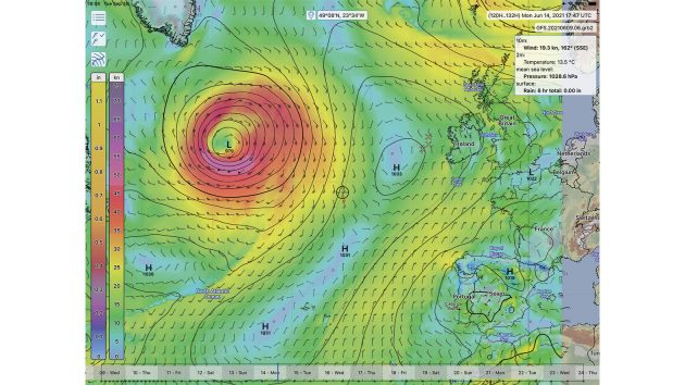 On Tuesday 15 June 2021 our Swan 48 Isbjorn was positioned near 51° North, some 350 miles south-west of Fastnet Rock. She was in deep North Atlantic waters, charging north on the fringes of a strong depression in sustained gale force south-westerlies and heavy seas.