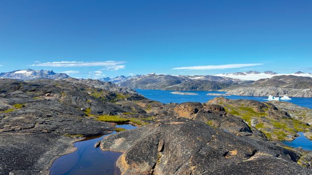 The eastern terminus of Prince Christian Sound is less dramatic than its counterpart in the west. The mountains lose their teeth and the land slopes gently downwards as you sail east. But there’s one last playground to explore while you stage to get across Denmark Strait: the Ikerasassuaq Weather Station.