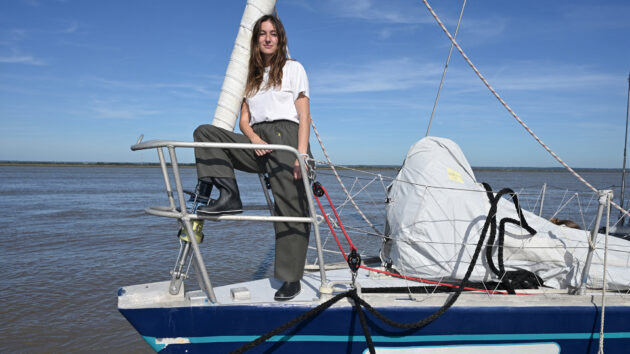 French climate activist Camille Etienne before sailing with other activists to COP30 on L’Esprit d’Equipe. Photo: Damien Meyer / Getty.