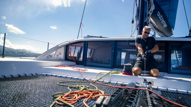 Any monohull sailors might underestimate the gains to be made by flying downwind sails. But a few knots can make a big difference over 3,000 miles. Anyway, you are out of excuses! Cats are stable, the bow is safe – and with its big soft nets, it’s even kind to your knees. There’s no justification for not going up there and giving this a go.