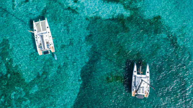 Living the bluewater dream, anchored in an idyllic spot – and catamarans can drop the hook in relatively shallow water. Photo: Robin Christol/GLY