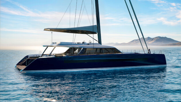 This is a multihull first for Baltic Yachts and a rare sailing catamaran that breaks the 100ft barrier – in recent years, this has been the almost exclusive preserve of Sunreef. Design for this bluewater ‘explorer’ yacht is by Berret-Racoupeau, who has drawn a fairly conventional-looking shape with a low-profile flybridge and a full-beam bathing platform.