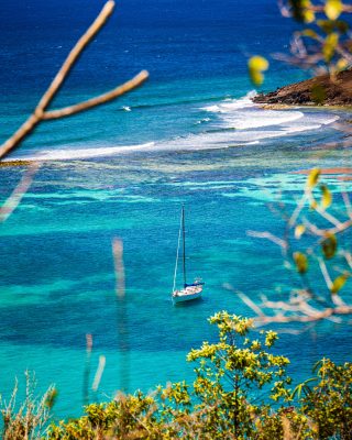 The last stop in the long string of islands is Petit St Vincent. The private island is the most southerly and a luxury resort that doesn’t encourage shoestring cruisers. There’s little need to go ashore, as the anchorage is spectacular and the cloudless, aqua-blue water reveals turtles and eagle rays.