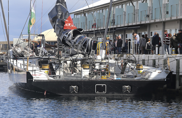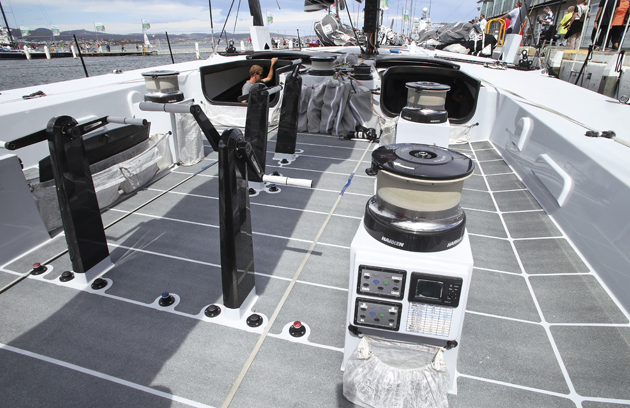 Not surprising that Clark should look to his regular skipper Ken Read and the French design team collaboration of Verdier Design/VPLP to create his new master-blaster. Despite a punishing one-year timeline for the build team, project managers Tim Hacket and Brandon Linton worked with boat captain Casey Smith – all three were involved in Read’s previous Volvo campaign – to see the new boat launched on time from the Hodgdon Yard in Maine in late 2014, given an impressive first run in heavy airs and then put on a ship to Sydney.