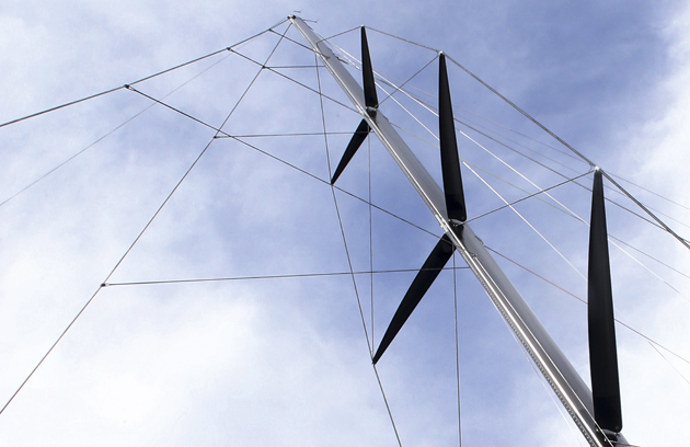 DEFLECTORS The 150ft (46m) four- spreader rig features two running backstays and three deflectors, precluding the need for checkstays for mast bend control, and also reducing windage and weight aloft. Mast height was limited to be able to pass under Sydney Harbour Bridge