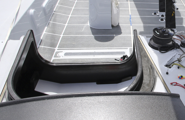 TACKING HEADS There are two concessions to ‘luxury’ aboard Comanche, one being a carbon fibre tray for six coffee cups and the other a carbon heads that can be tacked! No privacy for the latter, of course