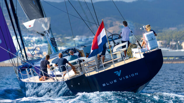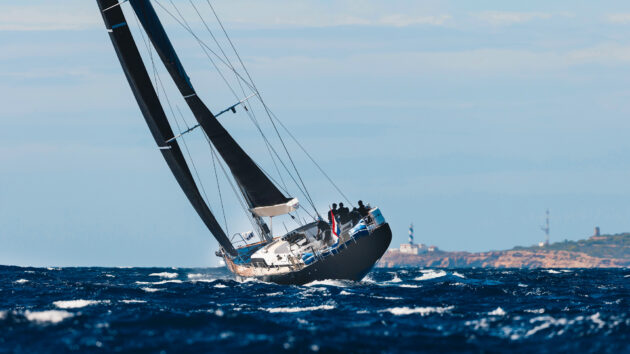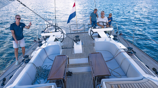 The 63CS Blue Vision is sporty for its size – you don’t want to relinquish the helm! Note: primary winch positions aren’t ideal for short-handing. Photo: Andreas Lindlahr/EYOTY