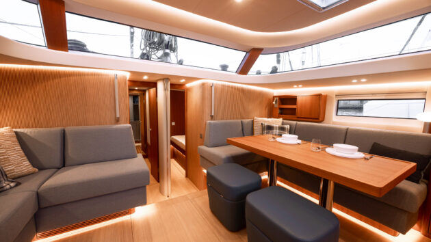Big coachroof windows and slim mullions maximise the amount of natural light finding its way into the saloon. Photo: Photo: Andreas Lindlahr/EYOTY