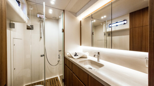 Owner’s cabin en suite with a separate shower stall. Photo: Andreas Lindlahr/EYOTY