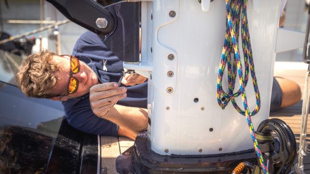 Rigging and thorough testing during Oyster’s commissioning process. Photo: Christopher Ison/Oyster Yachts
