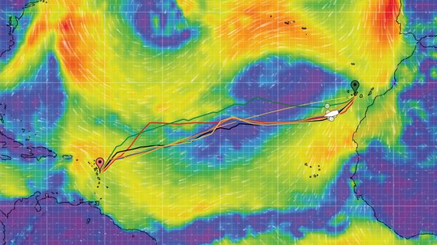 Once you know approximately when you’re planning to depart, it’s important to monitor the big picture. Look at the global view to understand the larger weather patterns that may affect your passage, paying particular attention to wind, currents, and wave states. For an ocean crossing this may involve studying weather patterns over a longer period of time and running routing simulations to see how the weather develops in different scenarios.