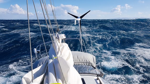 Fore-reaching is basically sailing very slowly to windward. It’s an ‘active’ tactic and will require someone on the helm, or at least monitoring the autopilot, but often staying active in heavy weather can give you a sense of purpose and can ease the mental stress of intense conditions.