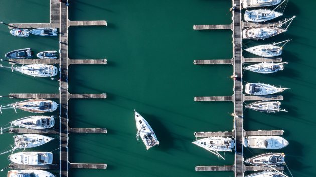 Many shaft-driven boats will turn in a boat length if you utilise a few short bursts of astern propulsion, just enough to boost the stern around but not enough to get going in, and establish, reverse steerage. This shapes your manoeuvres. In confined spaces a right-handed boat is best positioned on the port side and is easiest to park portside-to, since the prop walk draws it in that way, and creates an escape route by making room for a starboard-hand turn. There are times when this is thoroughly inconvenient, but if you plan your manoeuvres with prop walk in mind it’s largely a blessing rather than a curse.