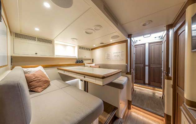 The cockpit also doubles as a guest area when the yacht is in cruise mode, and there is removable seating and table.