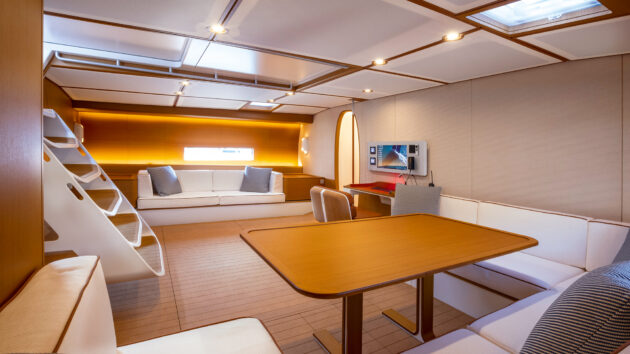 Given this is a race boat primarily, the main saloon and entire accommodation is striking. Photo: Francesco Ferri