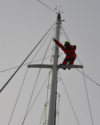 Ice spotting duties up the mast. Photo: by steven.edwards@basteir.com