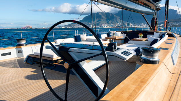 Long timber coamings create a sleek look, provide a helmsman seat and integrates the coachroof. Photo: Oriol Esteve/Photonautic