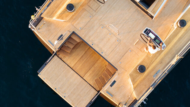 A prime feature of the SW108 is the large tender garage and bathing platform space. Kiboko 4 has a twin set of steps leading down to this. Photo: Oriol Esteve/Photonautic