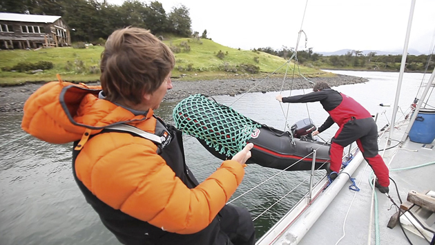 I learned that lesson the hard way (on that same trip in the Beagle Channel) when our 4m inflatable, tied with a single bowline to the rail and left alongside overnight, was thrown upside-down by a vertical wind coming down off a cliff face and landed in the cockpit, bending the steering wheel, while the items listed above spilled out and floated away in a pitch black night.