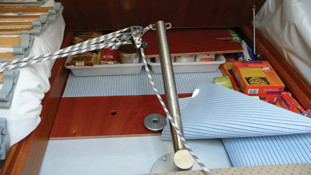 You won’t regret making or buying a handy billy. Use high spec line so that you can keep the rope slim, the blocks small, and the system lightweight. Remember the handy billy is all about convenience. Taper the splices well so they slide super smoothly on the blocks, and make sure the snap shackles on either end are big enough to clip onto most things. The handy billy has got to be versatile.