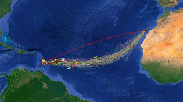 The 2023 ARC fleet almost entirely followed the southerly route. With low pressure near the Azores drifting south-west, a southerly route across the Atlantic was the only real option