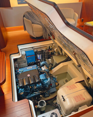 Saloon sole lifts on rams to reveal engine and genset. Photo: Irina Boersma